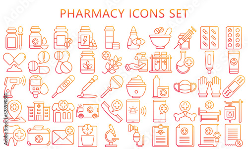 Simple set of outline pharmacy and medicine icons. Included the icons as drugs, medicine, prescription and more. use for modern UI, UX kit, digital banner and app. vector EPS 10 ready convert to SVG.