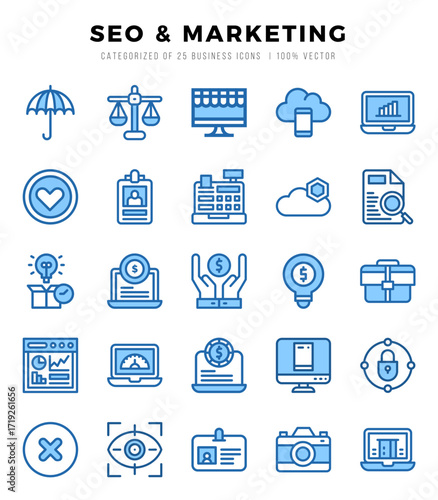 Simple Set of SEO & Marketing Related Vector Two Color Icons.
