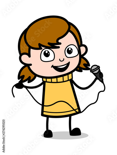 Singing in a Concert - Retro Cartoon Girl Teen Vector Illustration