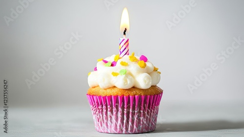 cupcake, candle, birthday, cake, sweet, dessert, delicious, food, party, celebration, sprinkle, whipped cream, frosting, vanilla, yellow, pink, white, colourful, light, background, single, tasty, treat, sweetness, bakery, pastry, confectionery, festive, joyful, happy, special occasion, wish, desire, dream, hope, petite, miniature, small, cute, adorable, charming, delightful, appetising, mouth-watering, irresistable