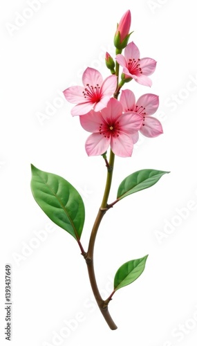 Single branch with leaves and a few flowers isolated on white background, flower, simple