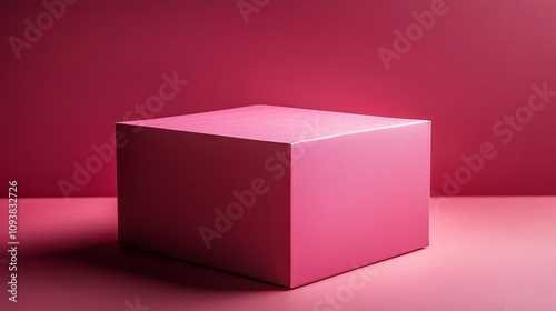 Single cardboard box, bright pink surface, smooth lighting, modern vibe