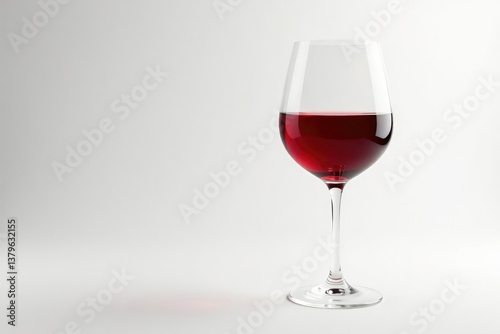 Single elegant red wine glass on white, showcasing its color , clean, burgundy