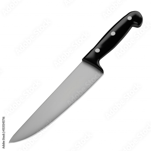 Single kitchen knife with stainless steel blade and black handle on transparent background