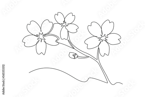 Single one line drawing Cherry tree spring flower. Cherry blossom concept. Continuous line draw design graphic vector illustration.