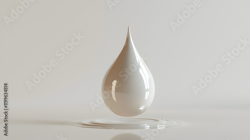 Single, perfect drop of liquid, hovering above a reflective surface. Minimalist and elegant design.