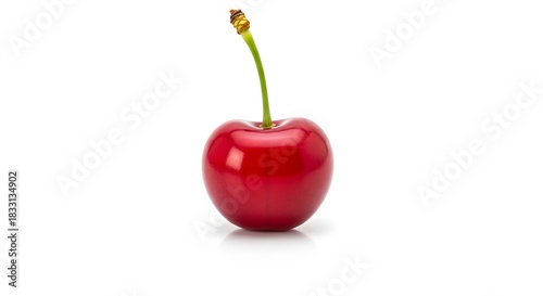 cherry, red, fruit, fresh, ripe, single, isolated, white background, studio shot, food, sweet, healthy, organic, natural, delicious, juicy, berry, stem, food photography, minimalist, clean, vibrant, glossy, round, nourishment, refreshing, summer, harvest, ingredient, dessert, snack, whole, cut-out, simple, bright, colours, botany, plant, foodstuff