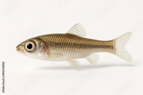Single Small Fish Floating on a White Background Close-up View