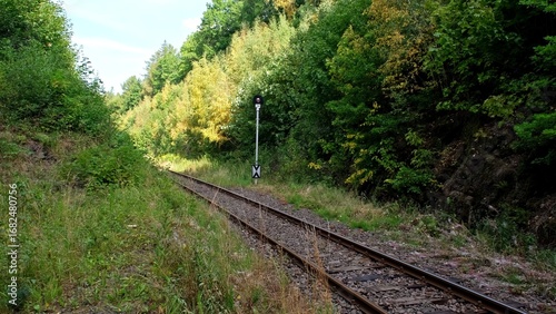 Single Track Railway with Semaphore Light Controlling Train Movement and Preventing Accident