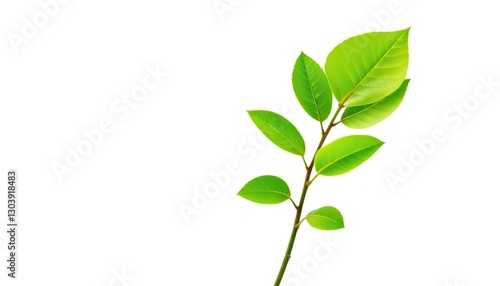 Single vibrant green plant, isolated on pure white backdrop, element, sprout