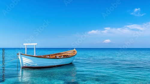 boat, ocean, water, blue, turquoise, sky, cloud, anchored, wooden, horizon, summer, vacation, calmness, idylli, seascape, coastal, marin, island, serenity, outdoors, nature, sunshine, peaceful, travel, scenic, landscape, relaxation, lone, adventure, photo, coast, nautical, fresh, vibrant, tropical, exploration, scenery, escape, fishing, ripple, rural, beautiful, natural