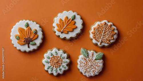 Six Autumn-Themed Cookies Featuring Floral and Leaf Designs in Fall Colors