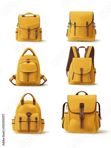 Six Different Yellow Backpack Designs Vector Illustration on White Background