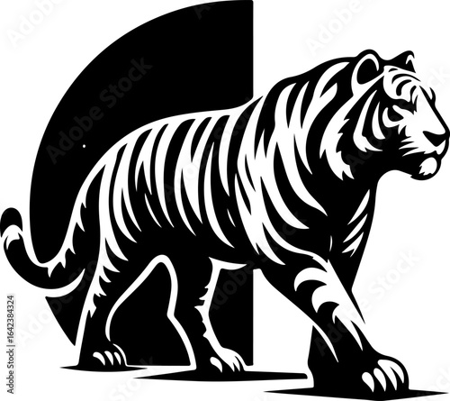 sketch vector illustration image design icon logo symbol tiger hunting abstract modern classic king of the jungle.