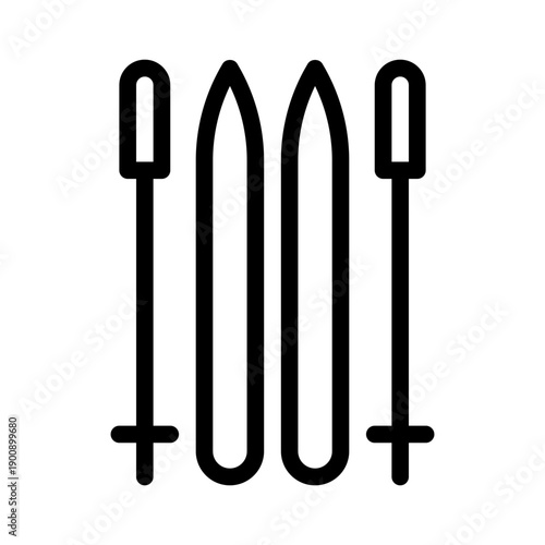 ski, snow, sport, winter, slope, icon, linear, outline, graphic, illustration
