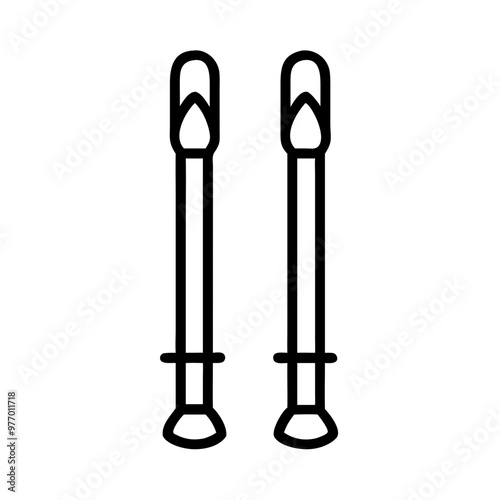 Ski poles icon, black and white, winter sports gear symbol