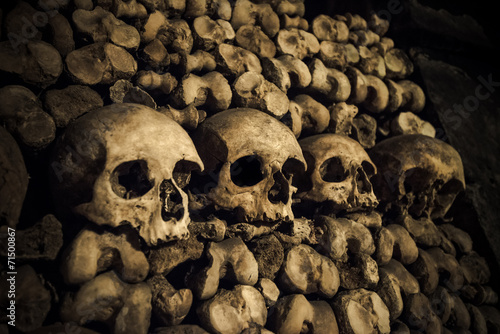 Skulls and bones in Paris Catacombs