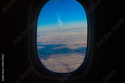 sky, window, aeroplane, cloud, plane, cloud, view, flight, air, fly, travel, aerial, nature, wing, aircraft, car, blue, mirror, landscape, horizon, road, flying, weather, heaven, white