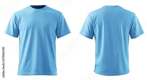Sky-blue t-shirt, front & back view, isolated on white