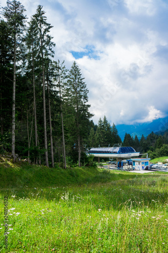 skylift landscape forest in trentino with dolomiti mountain