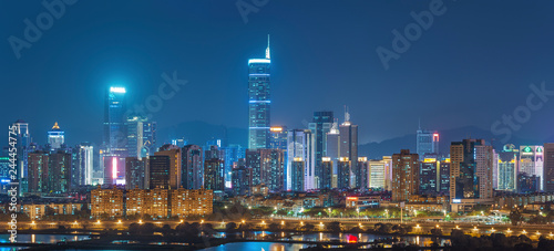 Skyline of Shenzhen City, China at twilight. Viewed from Hong Kong border