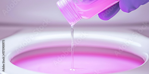 privies, detergent, gel, bowl, using, plastic, bottle, coloured, liquid, pour, over, surface, disinfection, plumbing, cleanliness, protective, protection, remove, latrine, washroom, agent, purity, housekeeping, domestic, equipment, hygienic, hygiene, homemaker, housework, lavatory, wc, modern, dirty, sanitary, room, household, service, bathroom, cleaner, laundered, ceramic, clean, pour, purple, pink, colours