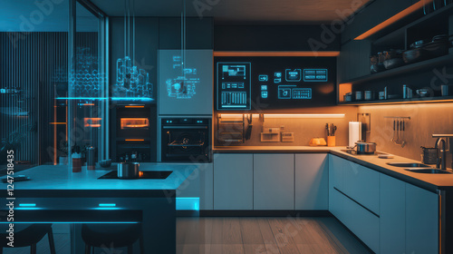kitchen, modern, technology, smart, appliance, sleek, stylish, illuminated, design, interior, contemporary, cooking, countertop, futuristic, home, minimalist, automation, space, organisation, lighting, cabinetry, utensil, decor, functionality