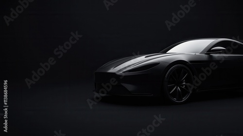 Sleek Black Sports Car Against a Dark Background in Studio Lighting