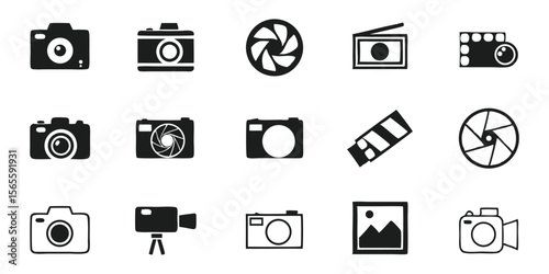 Sleek Black Vector Silhouette Icon Set for Photography and Video Tools