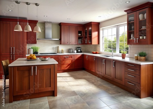 Sleek cherry kitchen units blend elegant design with stylish cabinetry, perfect for enhancing the aesthetics of modern