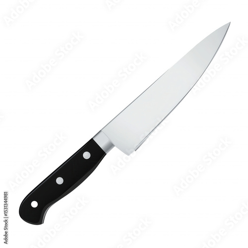 kitchen knife, isolated, modern, culinary, kitchen utensile, cutting, sharp, precision, diagonal, handle, blade, silver, rivet, natural light, utility, design, functionality, cut-out