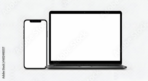 laptop, smartphone, phone, mobile, screen, blank, white, display, digital, device, technology, electronic, isolated, background, template, communication, contraption, responsive, design, website, app, presentation, empty, modern, portable, multimedia, cyberspace, wireless, connection, business, office, studio, product, rendering, computer, tablet, network, media, interface, desktop, front, view, copy space, tech, sleek, minimalist