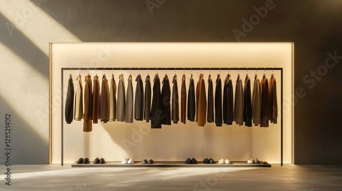 structure, environment, neutral, apparel, clothing, craftsmanship, visual, decor, retail, geometry, design, metal, showcase, space, display, elegance, style, sophistication, showroom, outerwear, layout, utility, minimalism, contemporary, textile, chic, industrial, sleek, uniformity, clothes rack, storage, rack, fashion, trend, aesthetic, organisation, modern, arrangement, display stand, boutique, minimalist, vector, simplicity