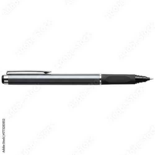 pen, writing, stationery, office, metallic, silver, black, grip, clip, drawing, tool, school, business, education, professional, modern, sleek, design, equipment, object