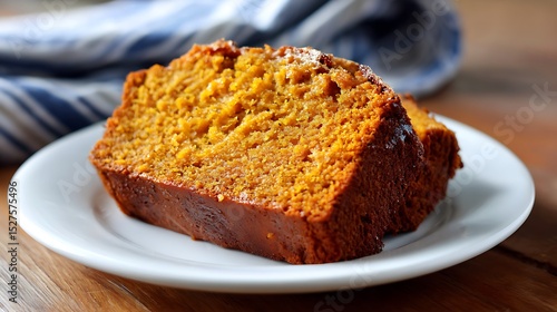 Slice of Moist Pumpkin Bread on a White Plate
