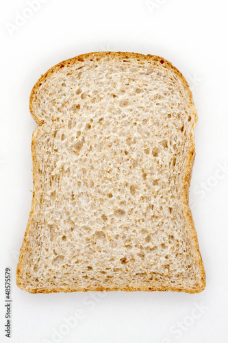 Slice of wholemeal bread on a white background