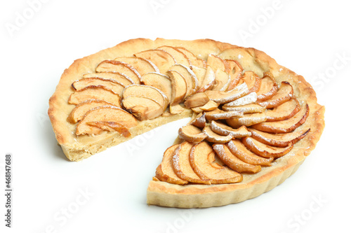 autumn, tradition, dessert, clipping, closeup, sweet, powdered, apple, pie, apple, background, tasty, food, white, thanksgiving, homemade, slice, gold, isolated, crust, sugar, fresh, fruit, american, baked