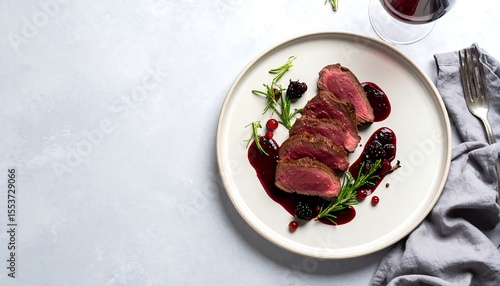 venison, meat, food, epicure, dinner, plate, dish, cookery, gastronomy, fine, dining, eatery, meal, delicious, cooking, culinary, elegant, top, view, closeup, detail, texture, appetising, preparation, beet, berry, sauce, onion, garnish, herb, red, purple, white, circle, marble, surface, flat, lay, photo, isolated, healthy, fresh, organic, diet, nourishment, studio, background, vertical, gastronomic
