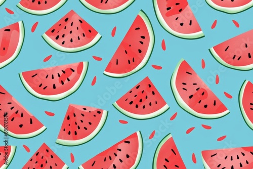 watermelon, pattern, red, blue, slice, background, seamless, food, fruit, summer, sweet, piece, wallpaper, melon, design, healthy, texture, fresh, juicy, layout, ornament, print, illustration, vegetarian, ripe, tropical, bright, berry, colours, colourful, concept, creative, green, nature, tasty, water, dessert, flat, lay, natural, organic, colours, composition, fashionable, graphic, horizontal, many, minimal, seed