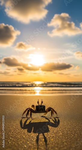 crab, beach, sunset, ocean, sea, nature, wildlife, sand, gold, light, sun, horizon, coastal, marin, crustacean, summer, vacation, travel, scenic, beautiful
