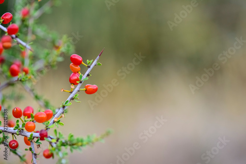Small red wild fruits in the Pampas forest, Patagonia, Argentina