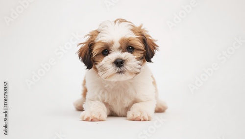Small Shih Tzu and Poodle Hybrid Puppy on Plain White Backdrop