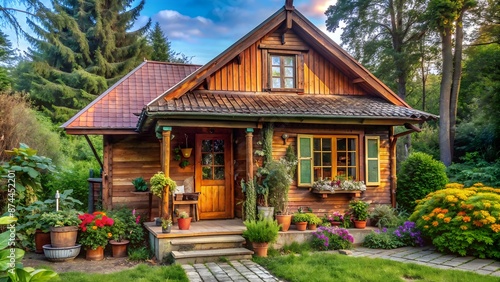 bungalow, cabin, house, home, flower, garden, plant, nature, tree, forest, wood, rural, idylli, peaceful, serene, tranquil, cosy, quaint, charming, rustic, wooden, architecture, building, exterior, outdoors, countryside, landscape, scenery, greenery, foliage, gardening, vibrant, colourful, cheerful, bright, sunny, summer, spring, beautiful, picturesque, enchanting, magical, fairy tale, storybook, whimsical, fantasy, dreamlike, surreal