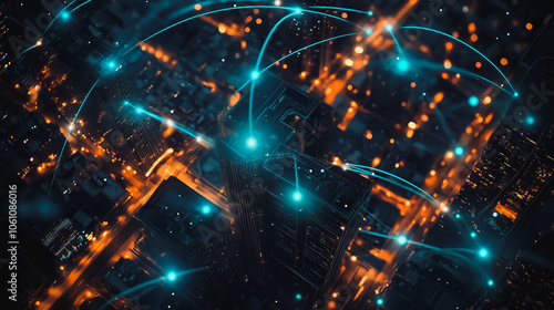Smart digital city with connection cyber security network reciprocity over the cityscape . future smart wireless digital city and social media networking systems that connects people within the city