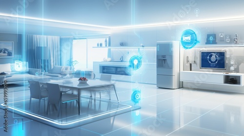 Smart home concept connecting objects in the house interior with artificial intelligent technology