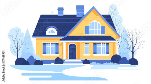 Smart home technology conceptual banner. Building consists digits and connected with icons of domestic smart devices. illustration concept of System intelligent control house on blue background. IOT.