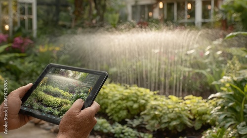 smart, home, device, irrigation, system, tablet, garden, sprinkler, display, technology, watering, landscape, nature, greenery, hand, device, control, monitoring, environment, horticulture, management, efficiency, innovation, design, gardening, solution, agriculture, screen, software, automation, optimization, user, plant, care, tool, equipment, sustainability, landscape design, water, tech, interactive, installation, datum