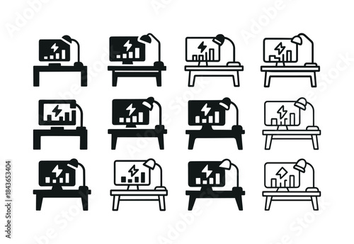 smart, office, icon, icon, set, logotype, workplace, energy, dashboard, harmonious, variation, same, emblematic, concept