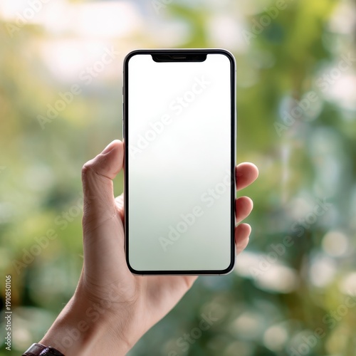 Smartphone in hand with blank screen for app mockup and mobile communication