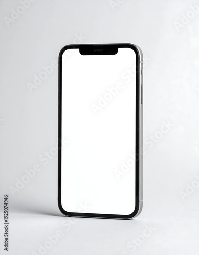Smartphone with blank screen on soft gray background. Minimal modern composition perfect for app promotion, digital finance, and technology marketing.
